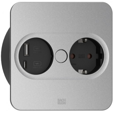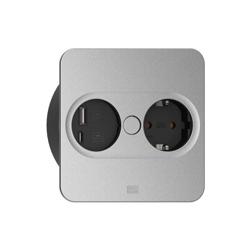 Description: TWIST 2 CARRÉ (1X SCHUKO + 1X USB CHARGER A/C 22W) ARGENT MAT + CÂBLE 2MTR