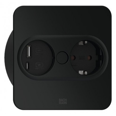 Description: TWIST 2 CARRÉ (1X SCHUKO + 1X USB CHARGER A/C 22W) NOIR MAT RAL9005 + CÂBLE 2MTR