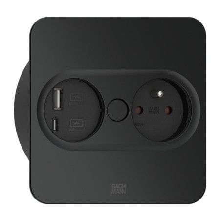 Description: TWIST 2 CARRÉ (1X UTE + 1X USB CHARGER A/C 22W) NOIR MAT RAL9005 + CÂBLE 2MTR