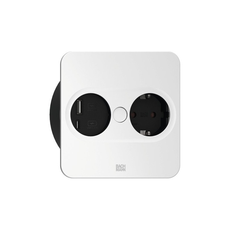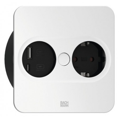 Description: TWIST 2 CARRÉ (1X SCHUKO + 1X USB CHARGER A/C 22W) BLANC MAT RAL9010 + CÂBLE 2MTR