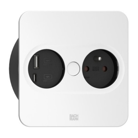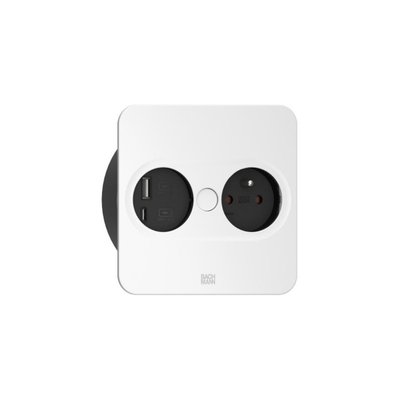 Description: TWIST 2 CARRÉ (1X UTE + 1X USB CHARGER A/C 22W) BLANC MAT RAL9010 + CÂBLE 2MTR