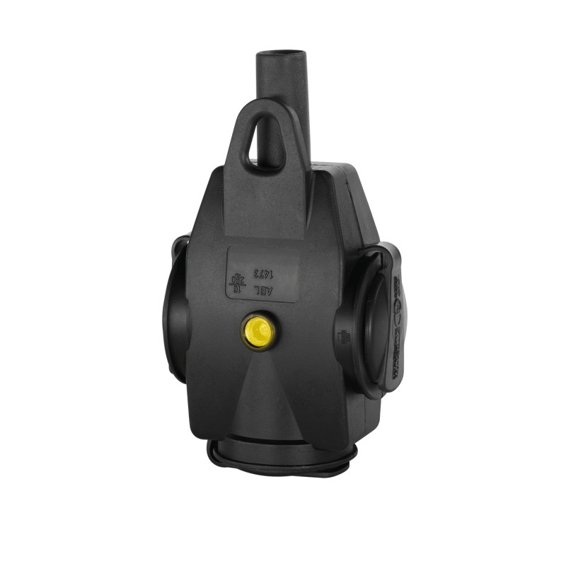 TRIPLE PRISE SUSPENDUE EN CAOUTCHOUC MASSIF AUX NORMES FRANÇAISE/BELGE, INDICATEUR DE TENSION,NOIR