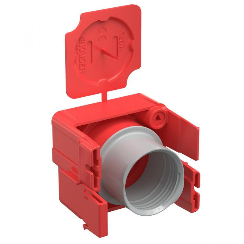 Description: Const.bétonB² passe-fil transition+final, pour tubes de Ø 32 mm, avec porte-aimant, 2 pces, avec surf. adhésive et couvercle