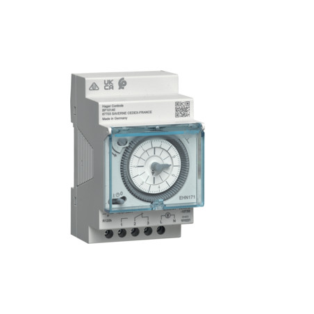 Emballage: 1 - 1 - 48 - 1152 Marque: HagerRéférence: EHN171EAN: 3250617201094Description: Interrupteur horaire 7j 1 voie A/Rés. 3M.