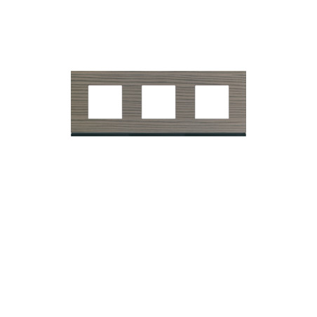 Plaque de recouvrement 3 postes horizontal entraxe 71 mm bois cendré
