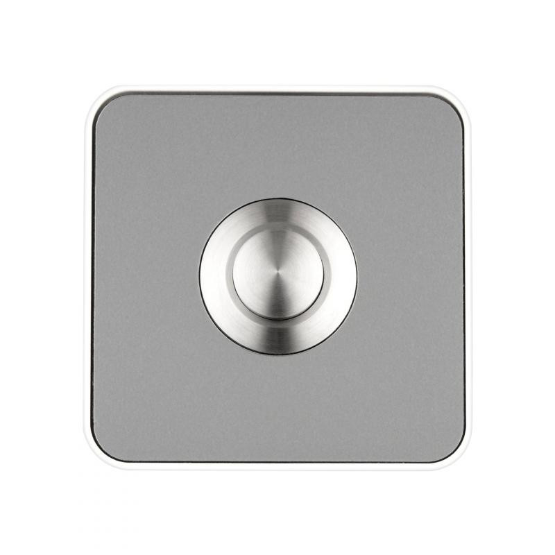 Description: PICCOLO - BOUTON POUSSOIR POUR SONNETTE (CARRÉ), ACIER INOXYDABLE - BLANC
