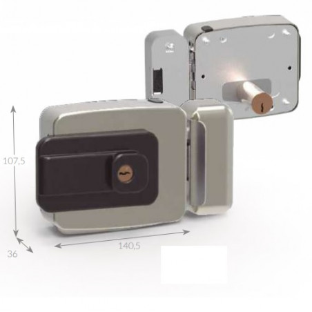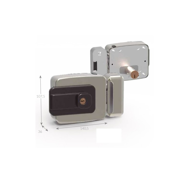 Description: SÉRIE CE - SERRURE MOTORISÉE APPARANTE (8-12V AC/DC) AVEC SERRURE À DOUBLE CYLINDRE POUR LE DÉVERROUILLAGE