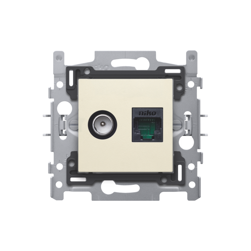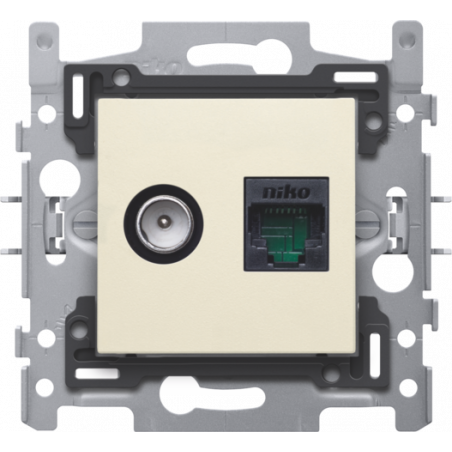 Emballage: 1 - 6 - 60 Marque: NikoRéférence: 100-66258EAN: 5413736390409Description: COAX + CONN. RJ45 UTPCouleur: Original creme