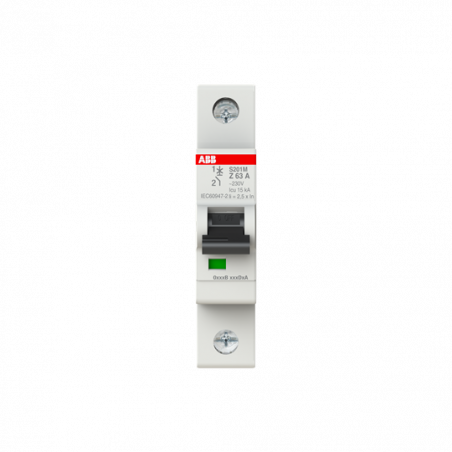 Emballage: stukMarque: ABB Industrial SolutionsRéférence: 2CDS271001R0608 / 6-digit: / Code court: S201M-Z63EAN: 4016779599801Description: DISJONCTEUR S200M 10KA, 1P, COURBE Z, 63A
