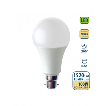 LAMPE GOUTTE SMD LED A60 15W 1520LM B22 BASE 4000K