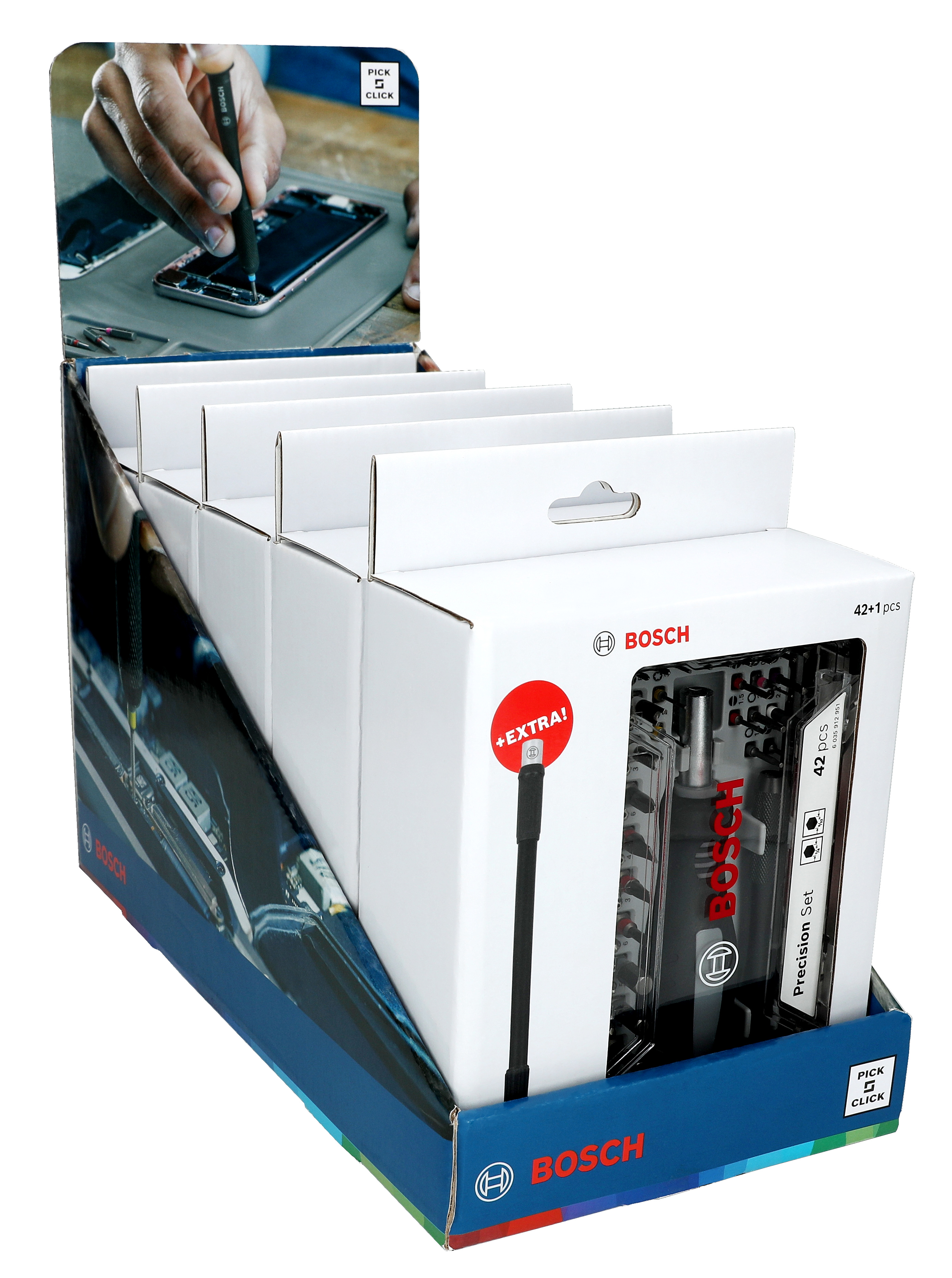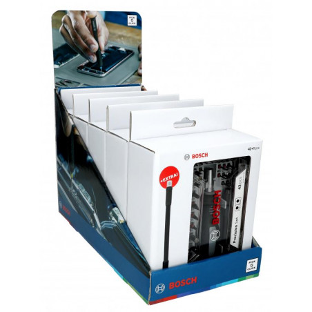 Emballage: 43Marque: BoschRéférence: 2607002837EAN: 6949509244871Description: Présentoir: 6x Set 43-pièces embouts précision