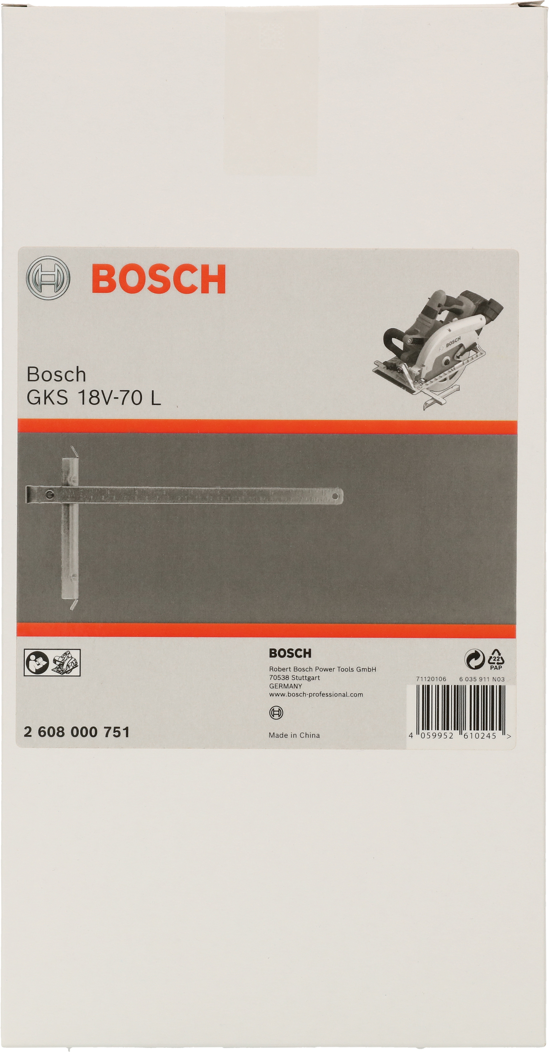 Emballage: 1Marque: BoschRéférence: 2608000751EAN: 4059952610245Description: Guide parallèle GKS18V-70L