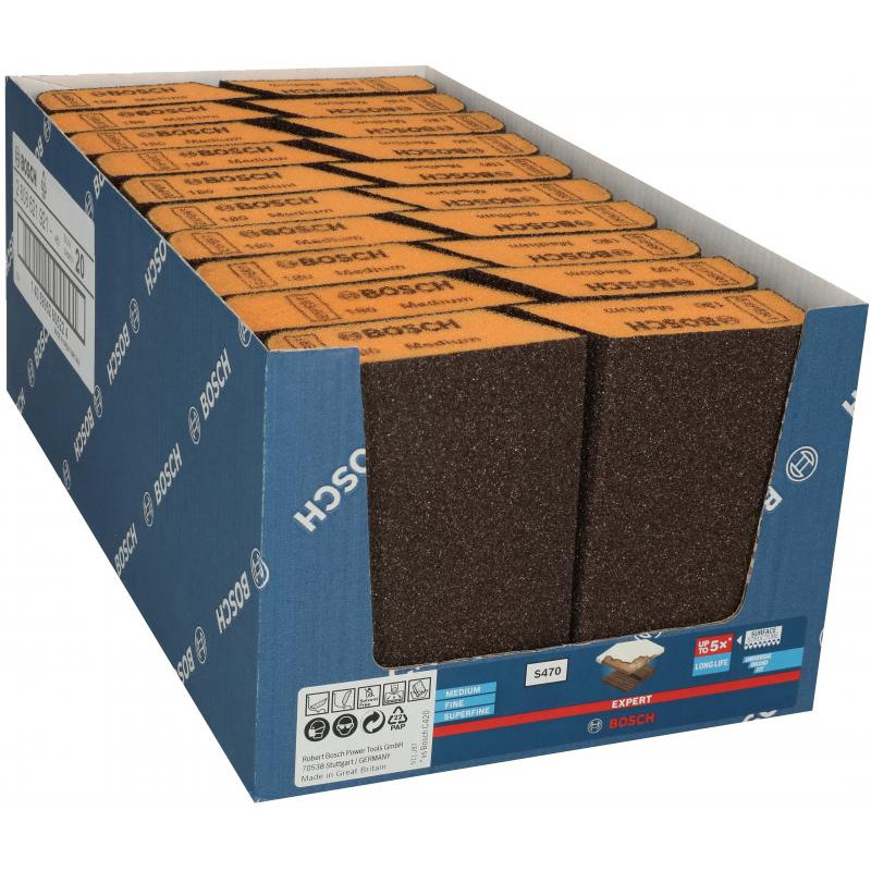 Emballage: 1Marque: BoschRéférence: 2608621921EAN: 4059952605005Description: EXPERT Bloc combiné abrasif, Best for Profile medium, 69 x 97 x 26 mm