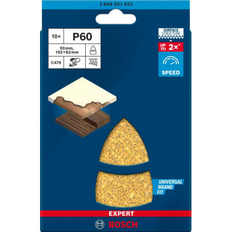 Description: EXPERT abrasif C470 Best for Wood and Paint, 102 x 62, 93 mm, grain 60, 11 trous, 10x