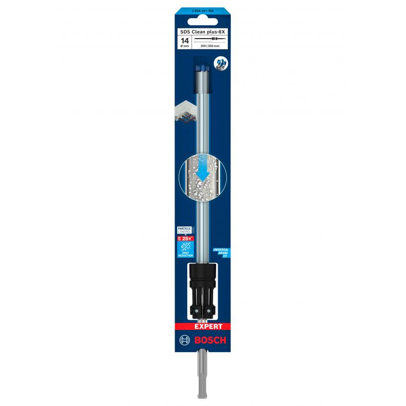 Emballage: 1Marque: BoschRéférence: 2608901768EAN: 4059952663005Description: Foret EXPERT SDS CLEAN plus-8X 14 x 200 x 350