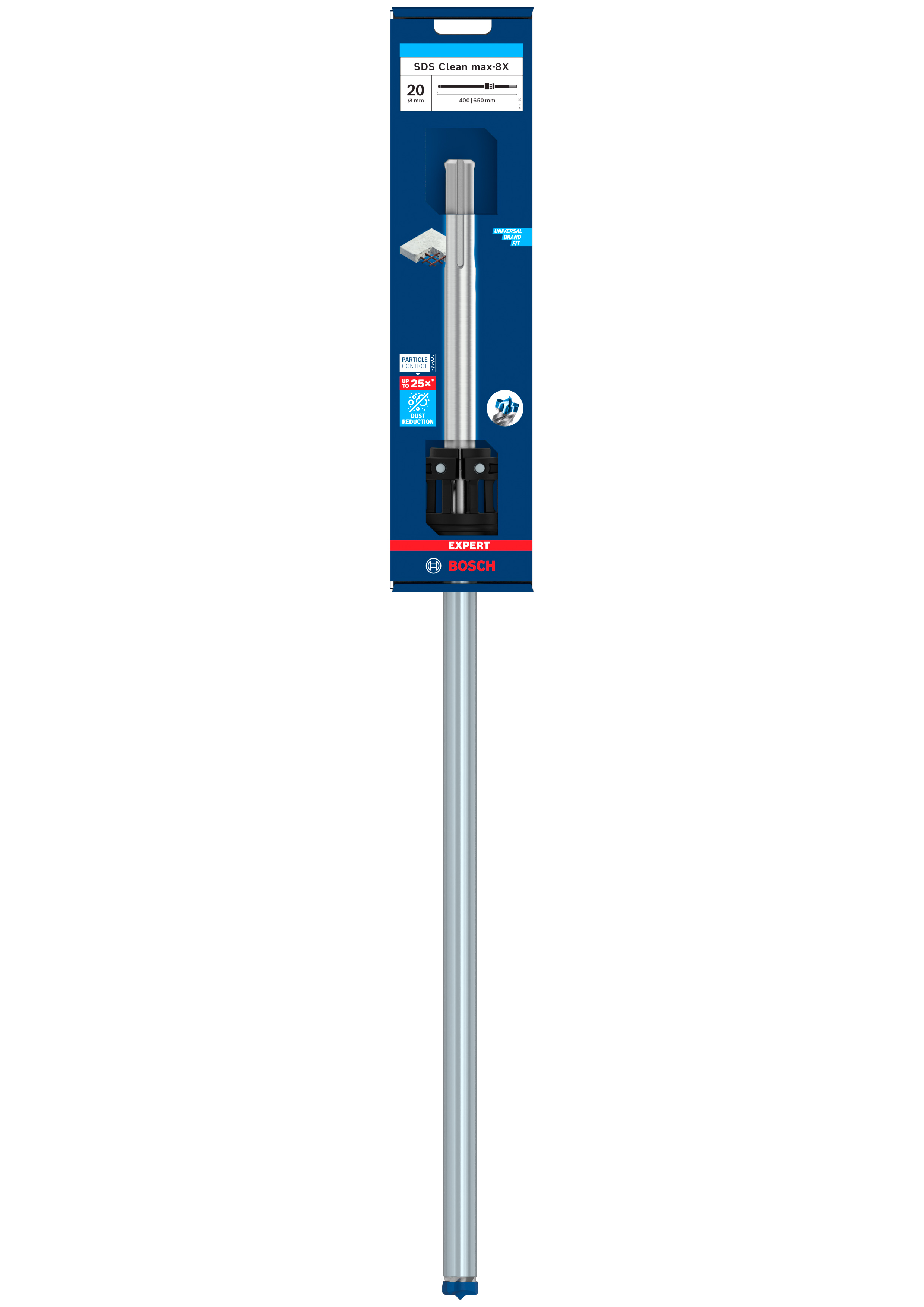 Emballage: 1Marque: BoschRéférence: 2608901782EAN: 4059952663142Description: Foret EXPERT SDS CLEAN max-8X 20 x 400 x 650