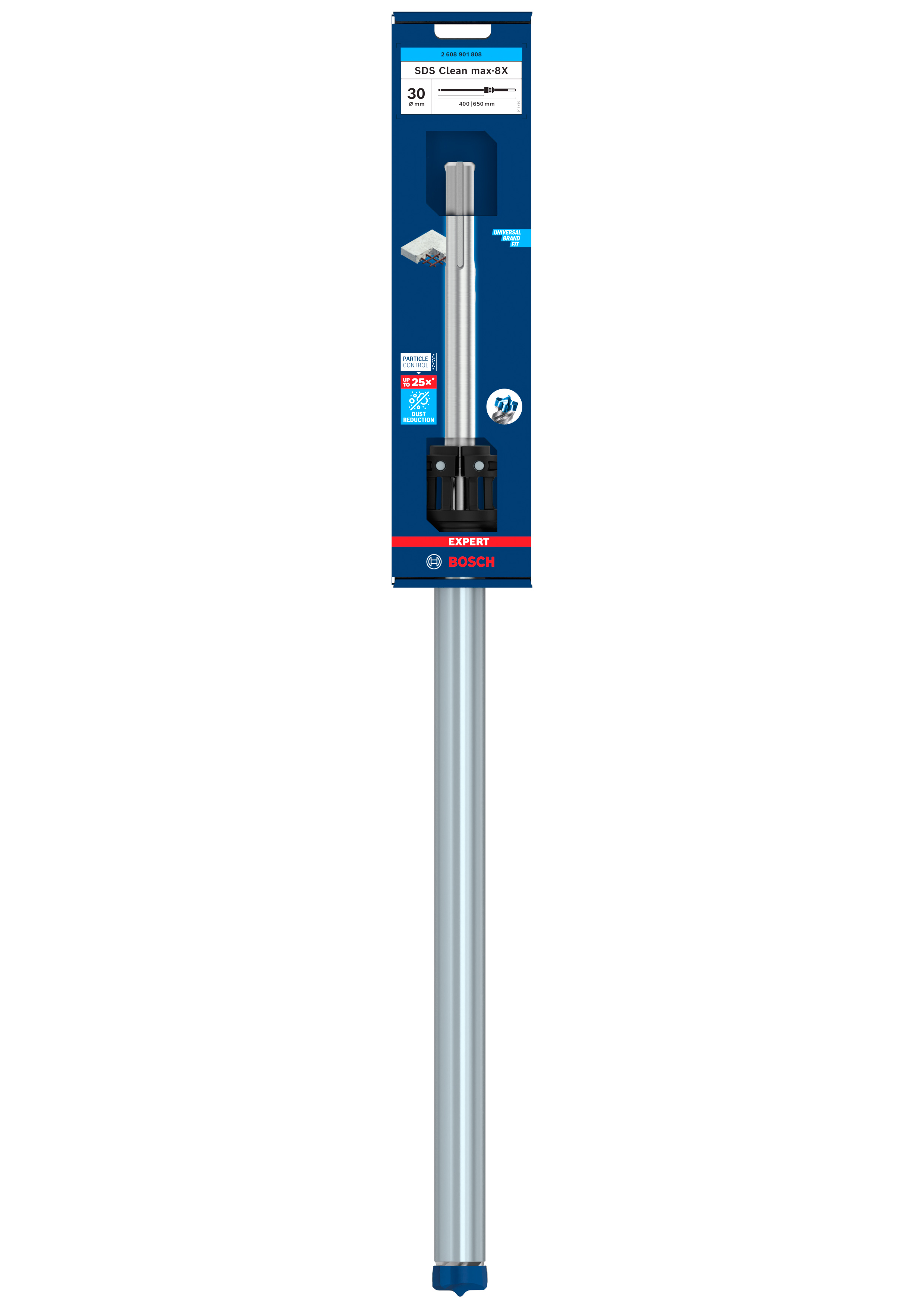 Emballage: 1Marque: BoschRéférence: 2608901808EAN: 4059952663401Description: Foret EXPERT SDS CLEAN max-8X 30 x 400 x 650