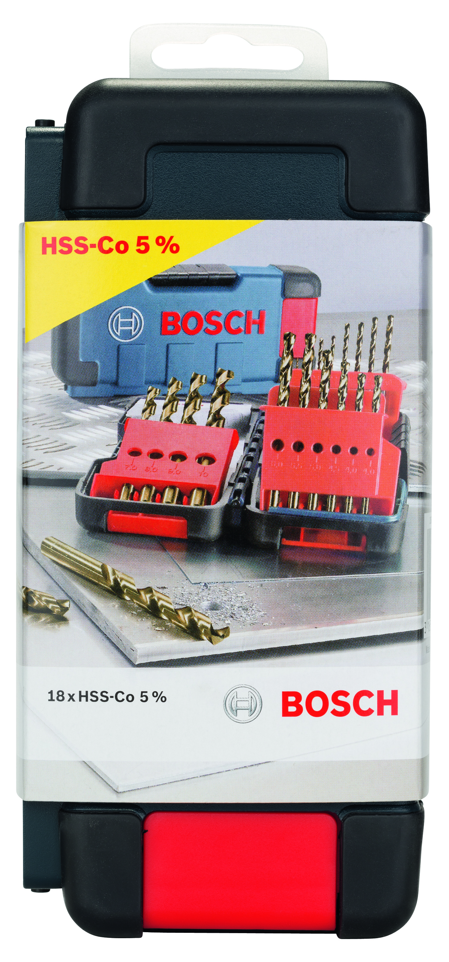 Emballage: 18Marque: BoschRéférence: 2607017047EAN: 3165140574730Description: Coffret 18 forets HSS-Co PRO pour l'Inox 1-10 mm
