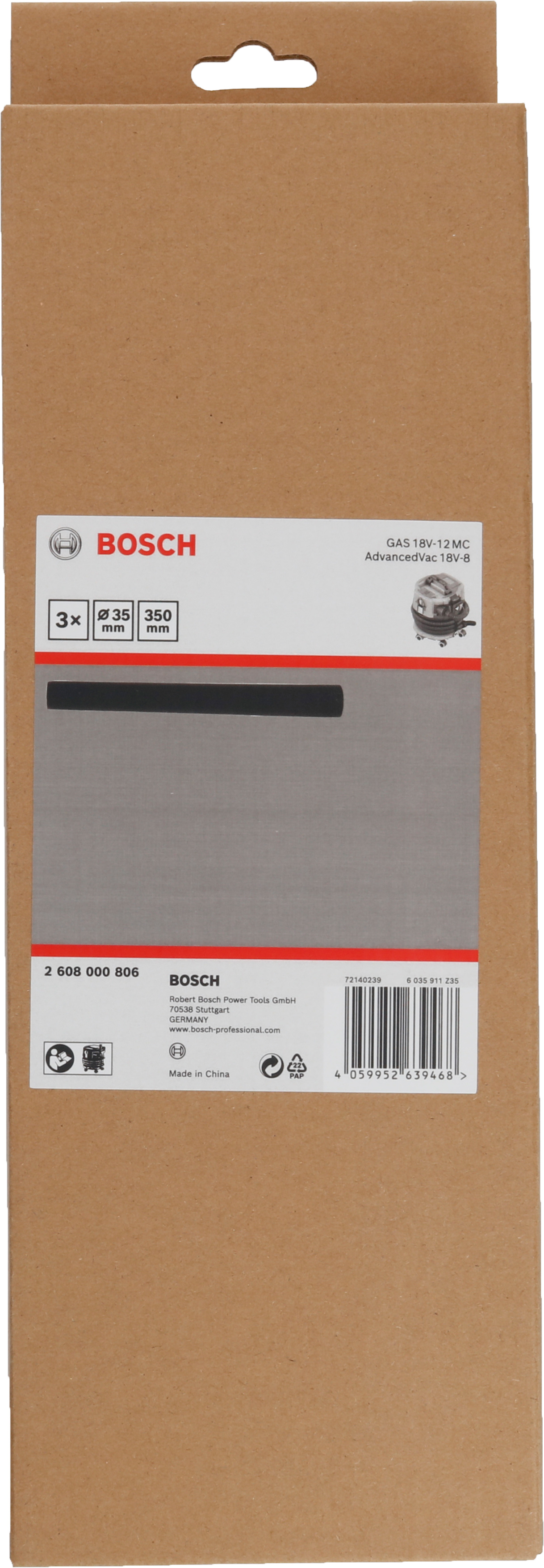 Emballage: 3Marque: BoschRéférence: 2608000806EAN: 4059952639468Description: Tuyaux d'aspiration, 350x40x40 mm