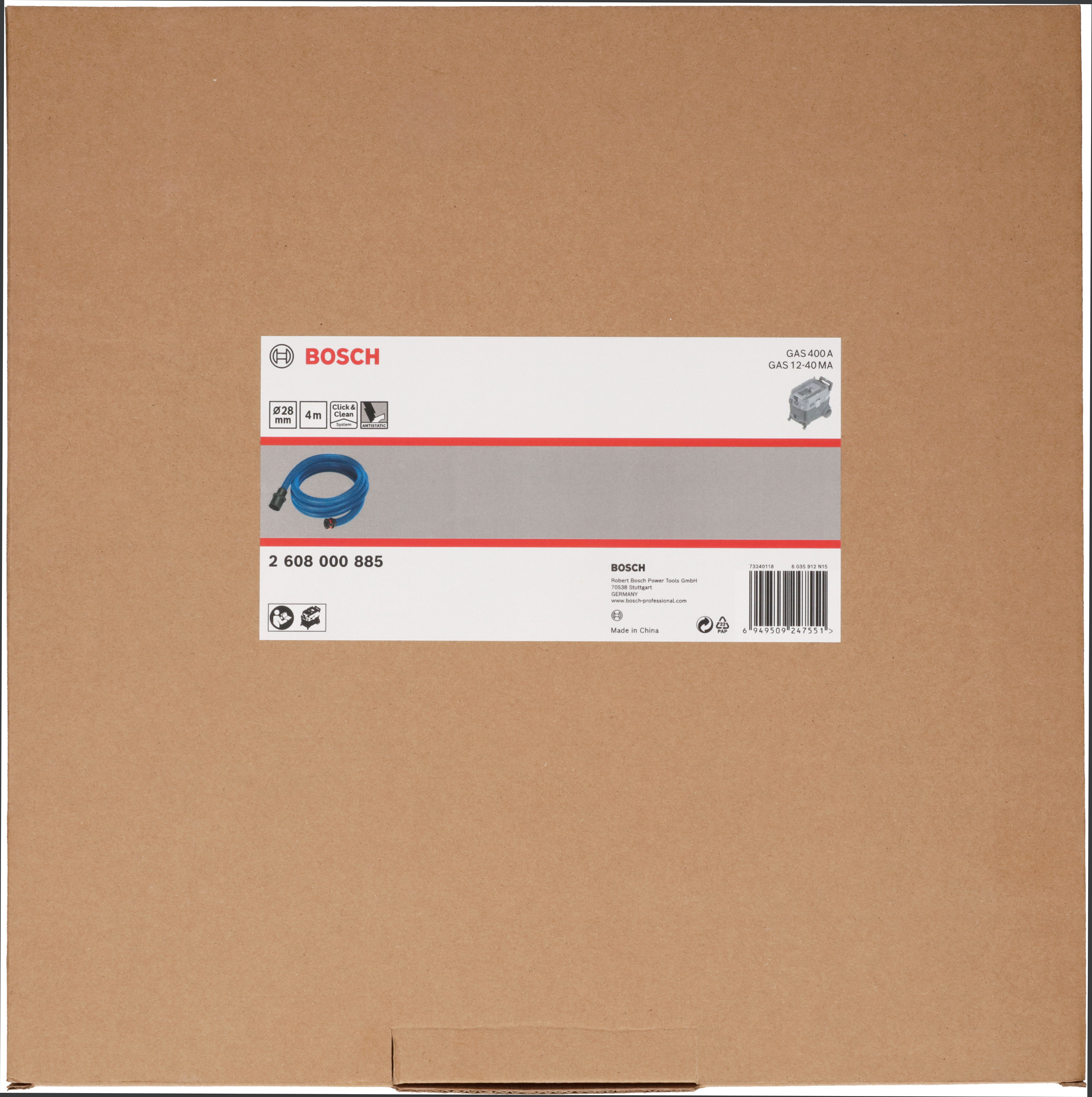 Emballage: 1Marque: BoschRéférence: 2608000885EAN: 6949509247551Description: Tuyau conducteur 4 m / 28 mm