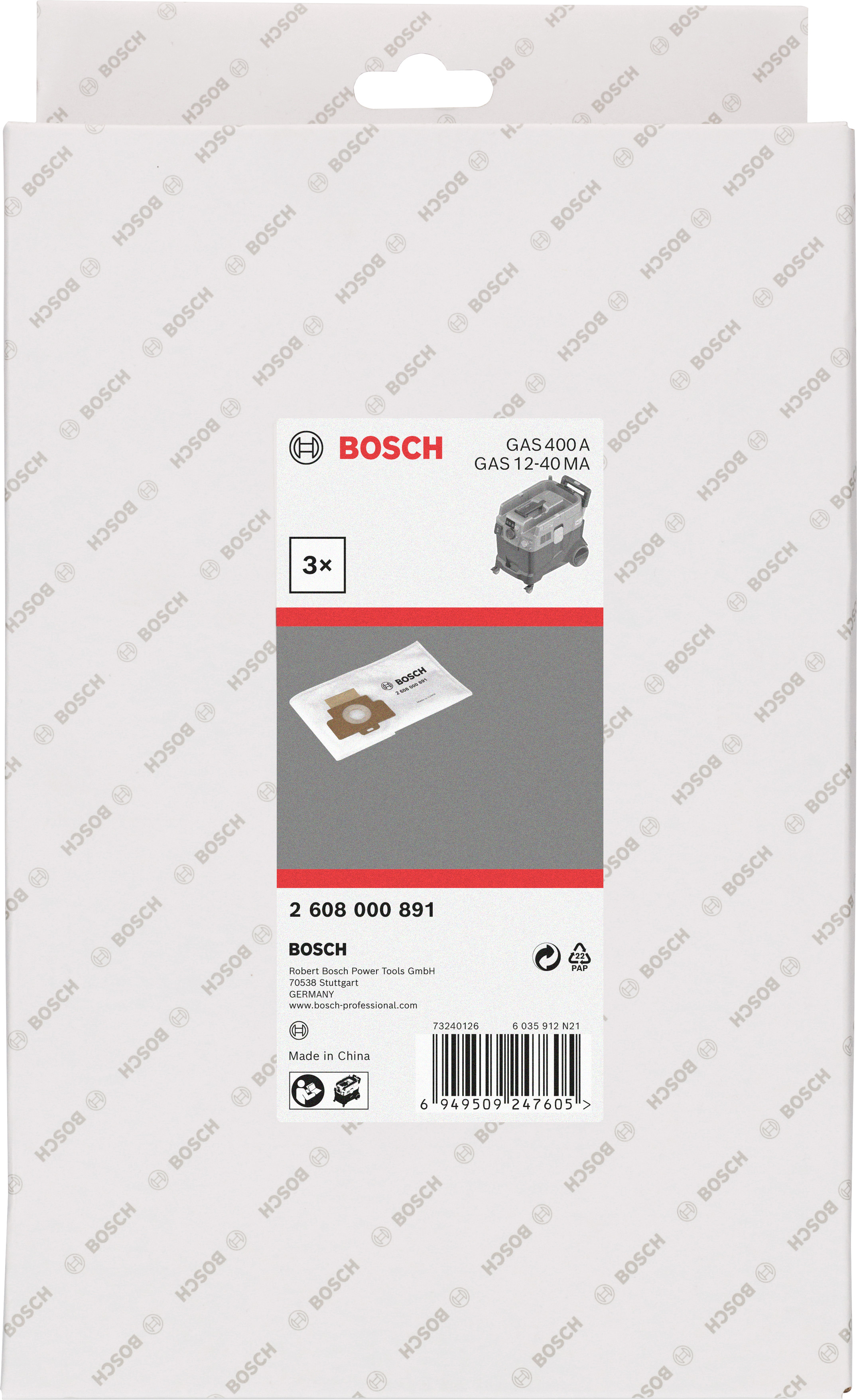 Emballage: 3Marque: BoschRéférence: 2608000891EAN: 6949509247605Description: Sac-filtre en non-tissé