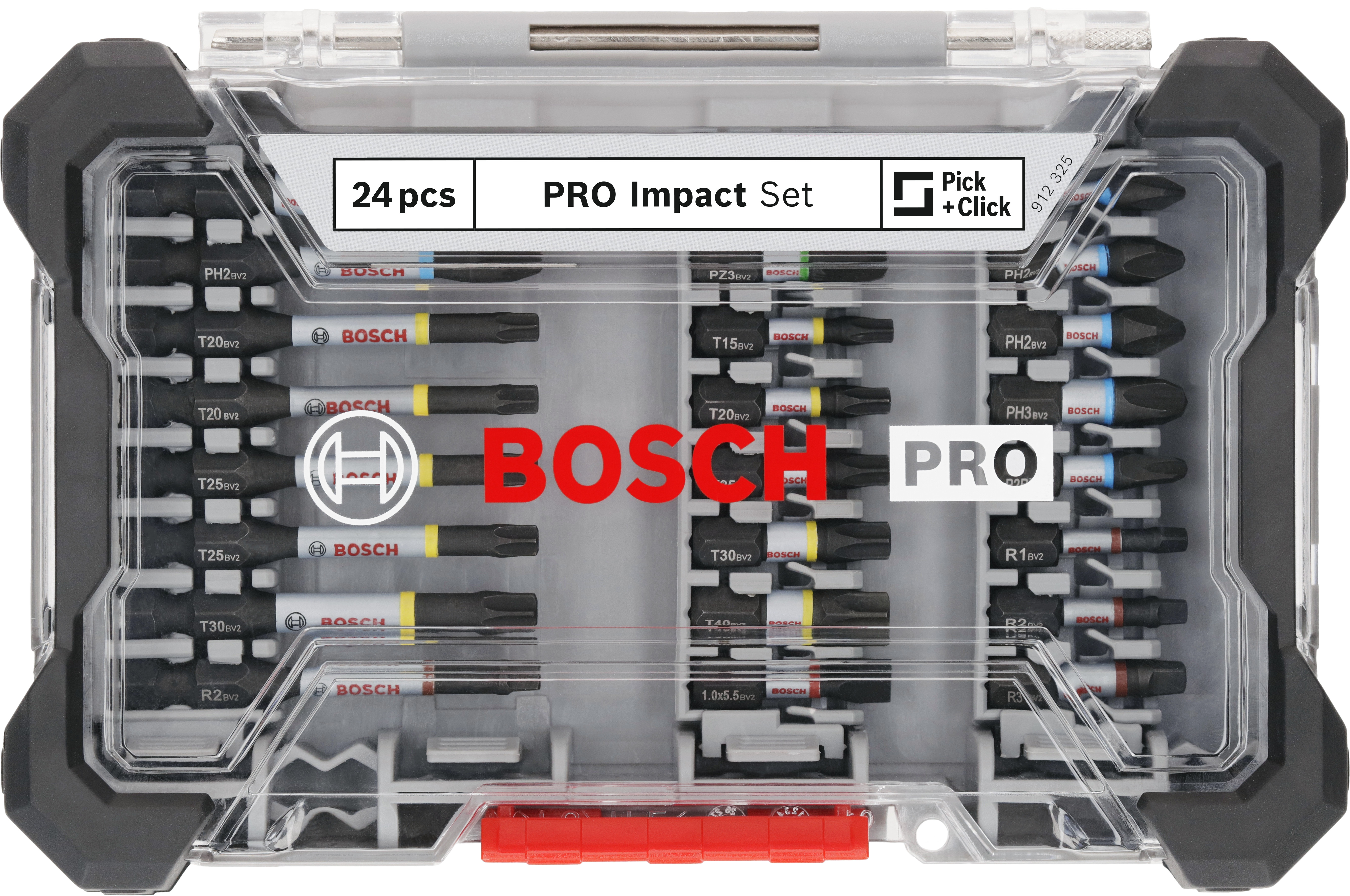 Emballage: 24Marque: BoschRéférence: 2608521U75EAN: 6949509242563Description: Coffret Vissage PRO Impact 24 pcs