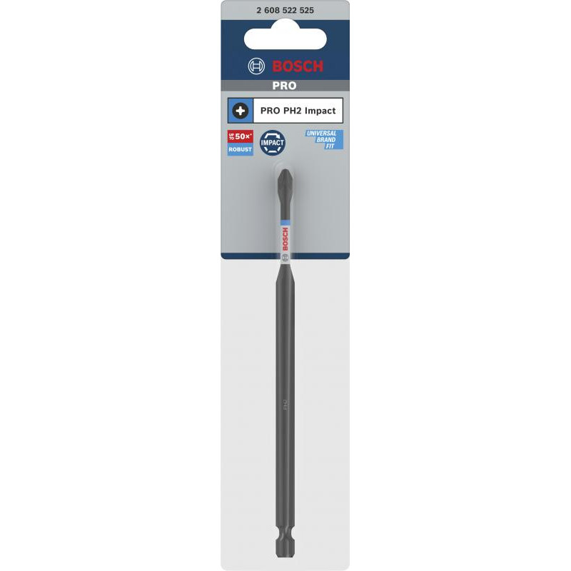 Emballage: 1Marque: BoschRéférence: 2608522525EAN: 6949509241948Description: Embout de vissage PRO Impact PH2 150 mm