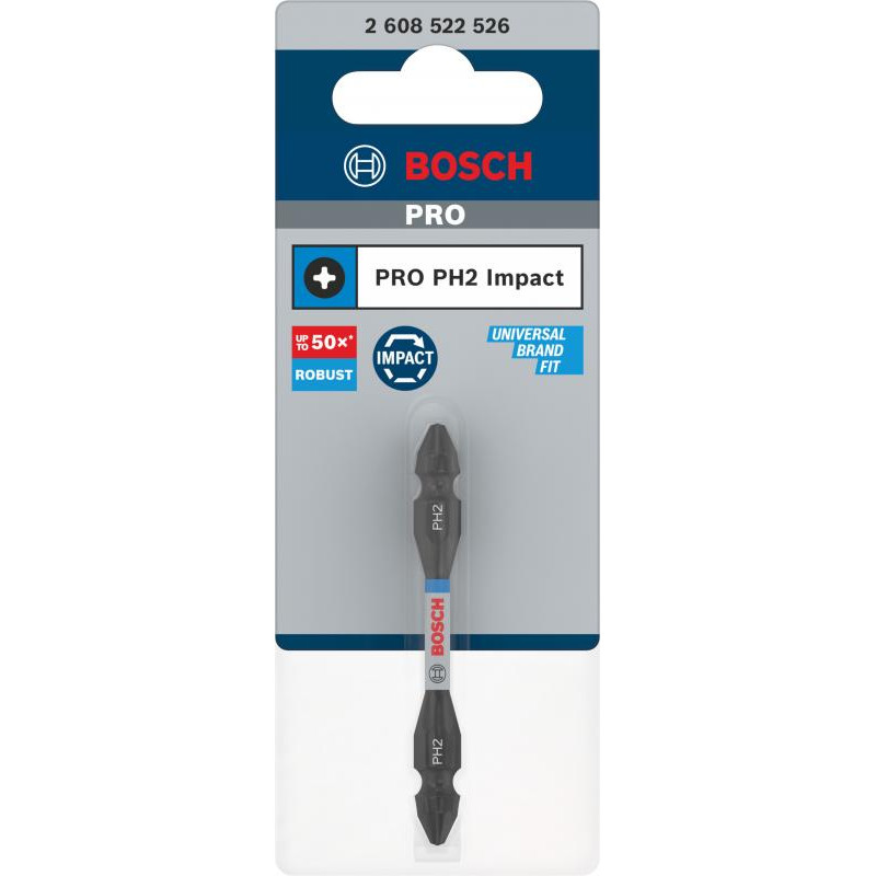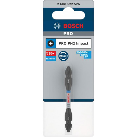 Emballage: 1Marque: BoschRéférence: 2608522526EAN: 6949509241955Description: Embout de vissage PRO Impact Double-tête PH2 65 mm