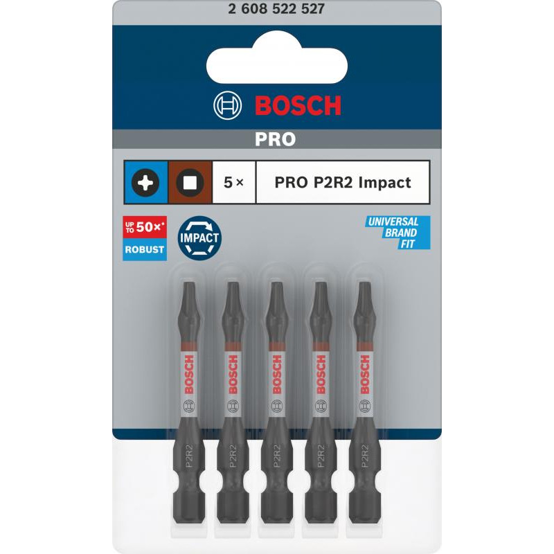 Emballage: 5Marque: BoschRéférence: 2608522527EAN: 6949509241962Description: 5 Embouts de vissage PRO Impact P2R2 55 mm