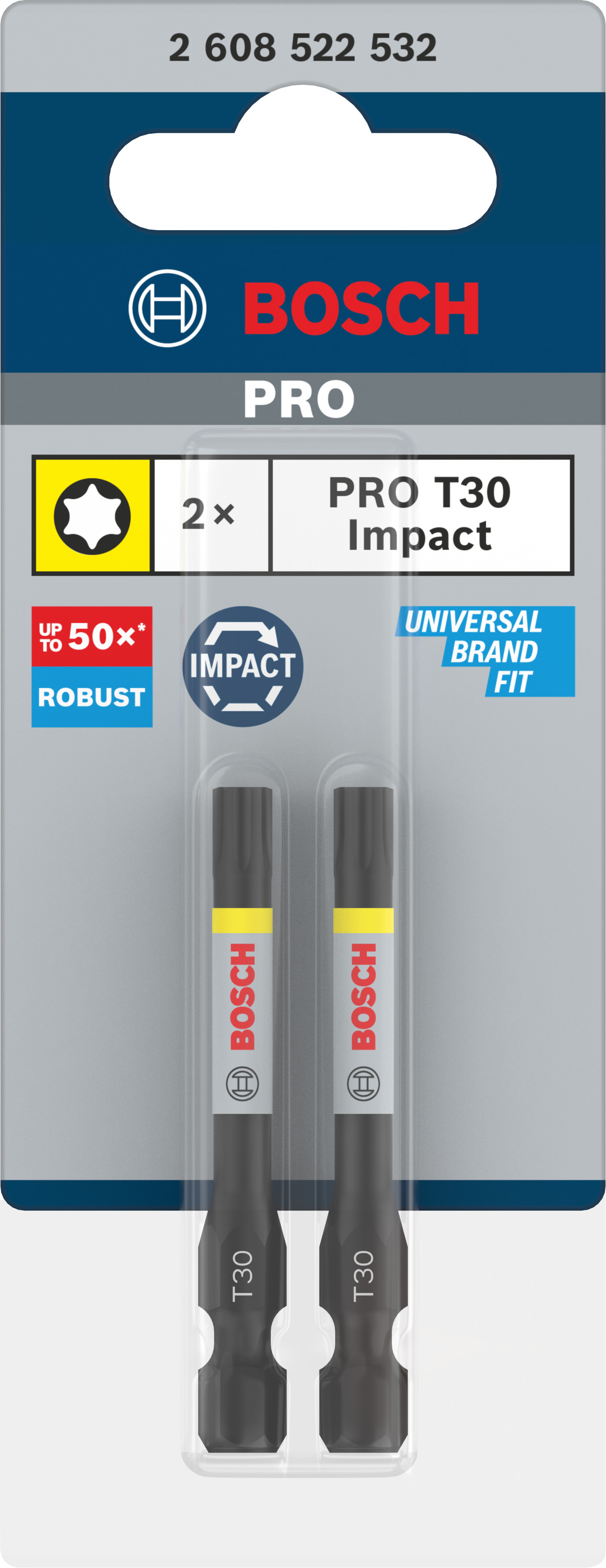 Emballage: 2Marque: BoschRéférence: 2608522532EAN: 6949509242013Description: 2 Embouts de vissage PRO Impact T30 55 mm