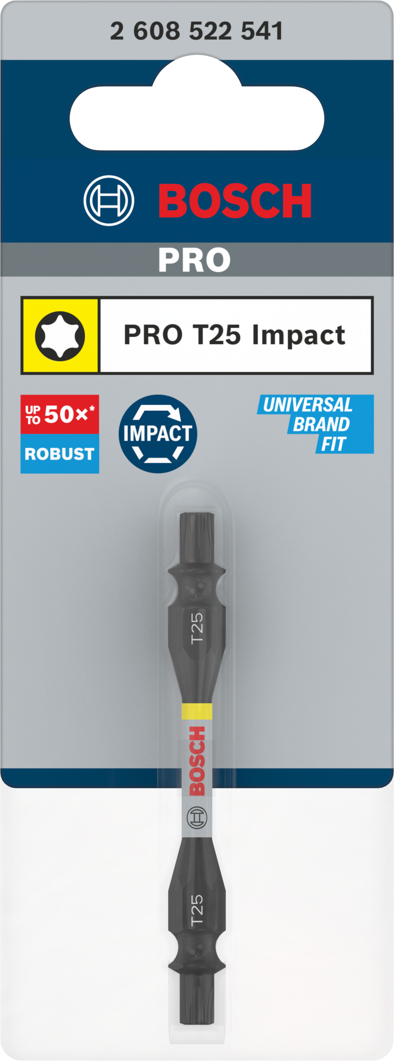 Emballage: 1Marque: BoschRéférence: 2608522541EAN: 6949509242129Description: Embout de vissage PRO Impact Double-tête T25 65 mm