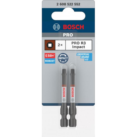 Emballage: 2Marque: BoschRéférence: 2608522552EAN: 6949509242259Description: 2 Embouts de vissage PRO Impact R3 55 mm