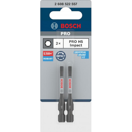 Emballage: 2Marque: BoschRéférence: 2608522557EAN: 6949509242327Description: 2 Embouts de vissage PRO Impact H5 55 mm