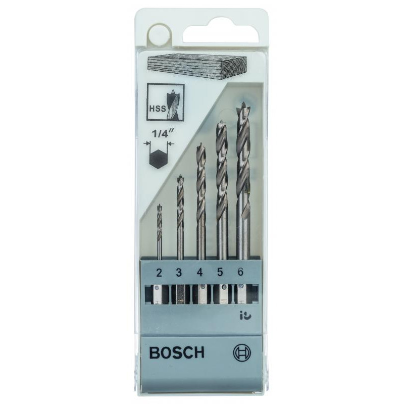 Emballage: 5Marque: BoschRéférence: 2608595525EAN: 3165140395502Description: Coffret de 5 Mèches à Bois PRO queue six pans