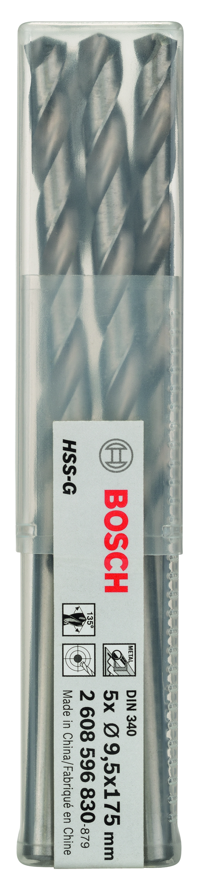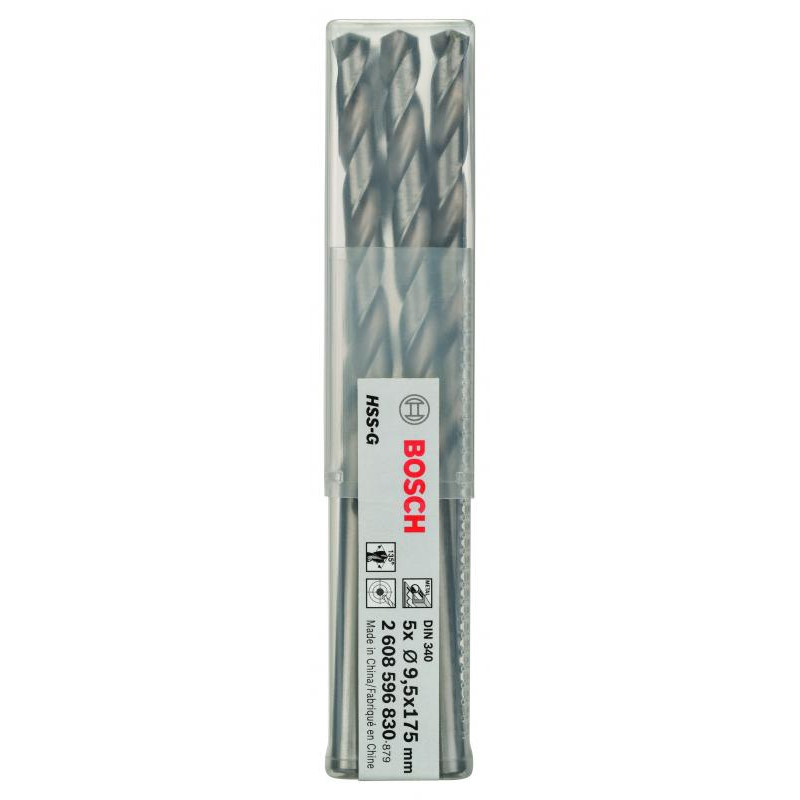 Emballage: 5Marque: BoschRéférence: 2608596830EAN: 3165140067201Description: 5 Forets HSS-G PRO pour le Métal 9.5x115x175 mm