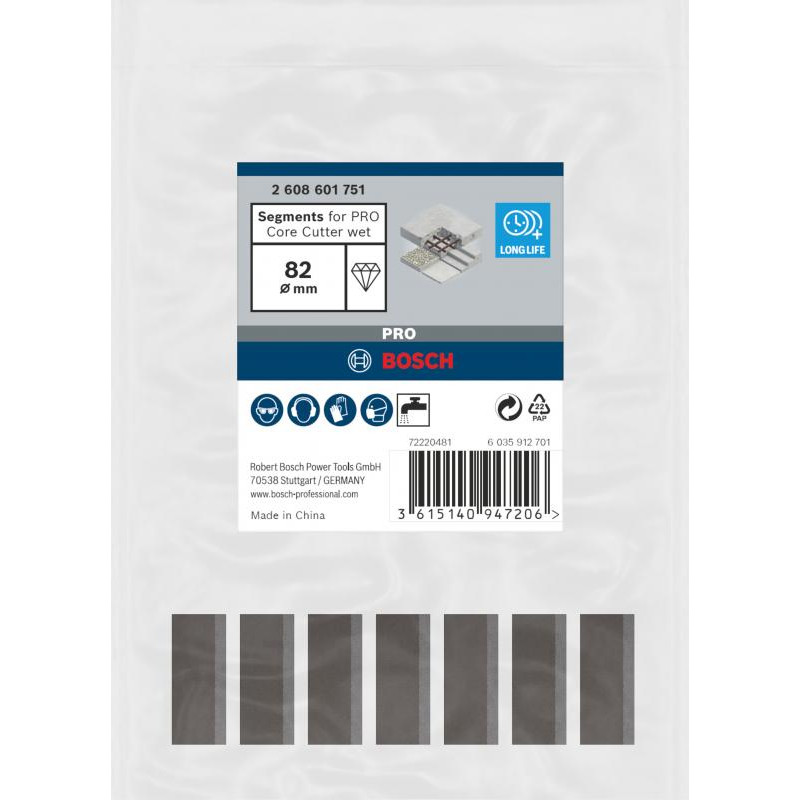 Emballage: 1Marque: BoschRéférence: 2608601751EAN: 3165140947206Description: Couronne diamant à eau PRO, 82x10,0 mm, 1 1/4-Inch UNC Segment
