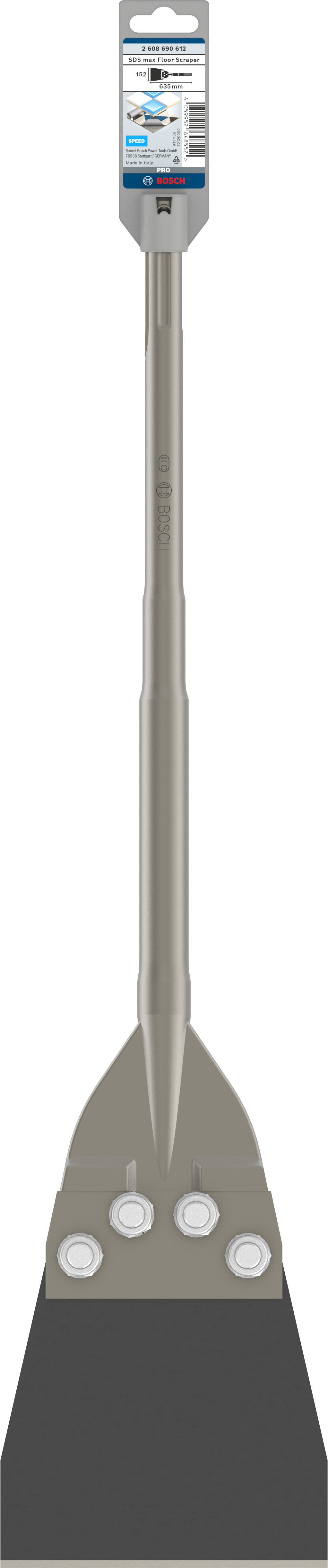 Emballage: 1Marque: BoschRéférence: 2608690612EAN: 4059952648552Description: Burin racleur PRO SDS max 152x635 mm