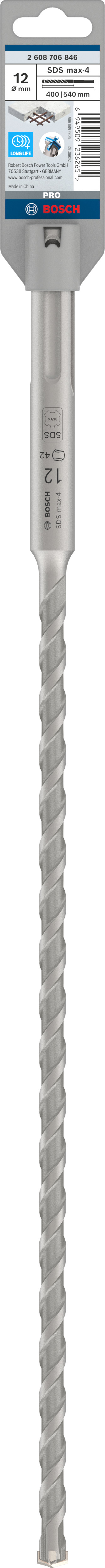 Emballage: 1Marque: BoschRéférence: 2608706846EAN: 6949509236265Description: Foret PRO SDS max-4, 12x400x540 mm