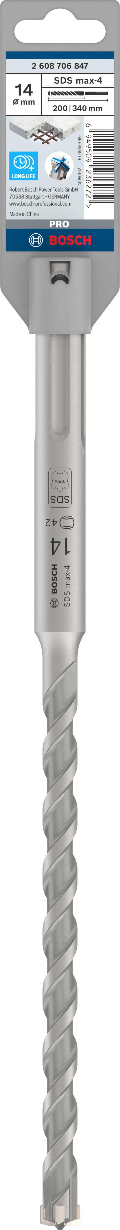 Emballage: 1Marque: BoschRéférence: 2608706847EAN: 6949509236272Description: Foret PRO SDS max-4, 14x200x340 mm
