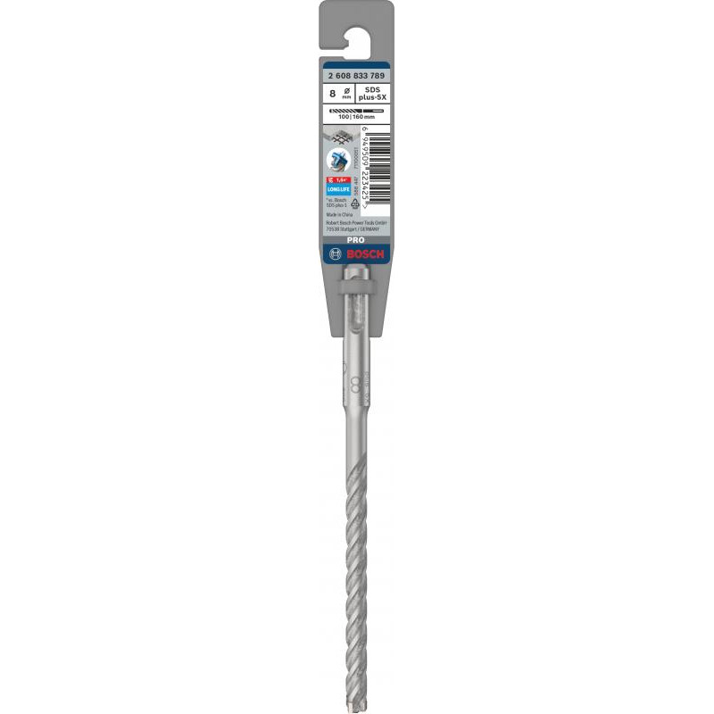 Emballage: 1Marque: BoschRéférence: 2608833789EAN: 6949509223425Description: Foret beton PRO SDS plus-5X 8x100x160 mm