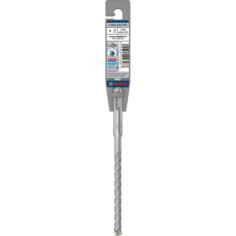 Emballage: 1Marque: BoschRéférence: 2608833795EAN: 6949509223487Description: Foret beton PRO SDS plus-5X 9x100x160 mm