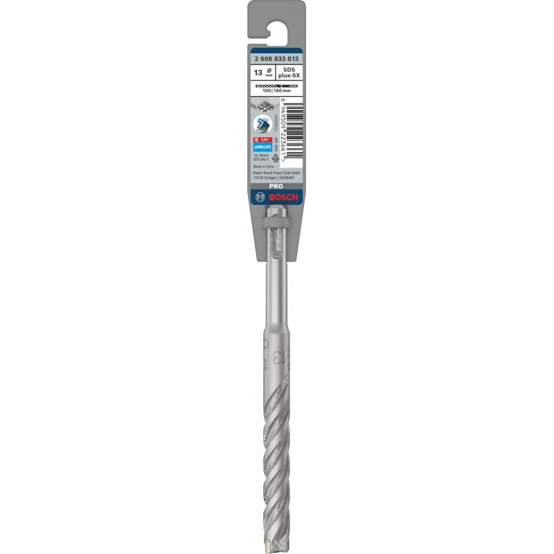Emballage: 1Marque: BoschRéférence: 2608833813EAN: 6949509223661Description: Foret beton PRO SDS plus-5X 13x100x160 mm