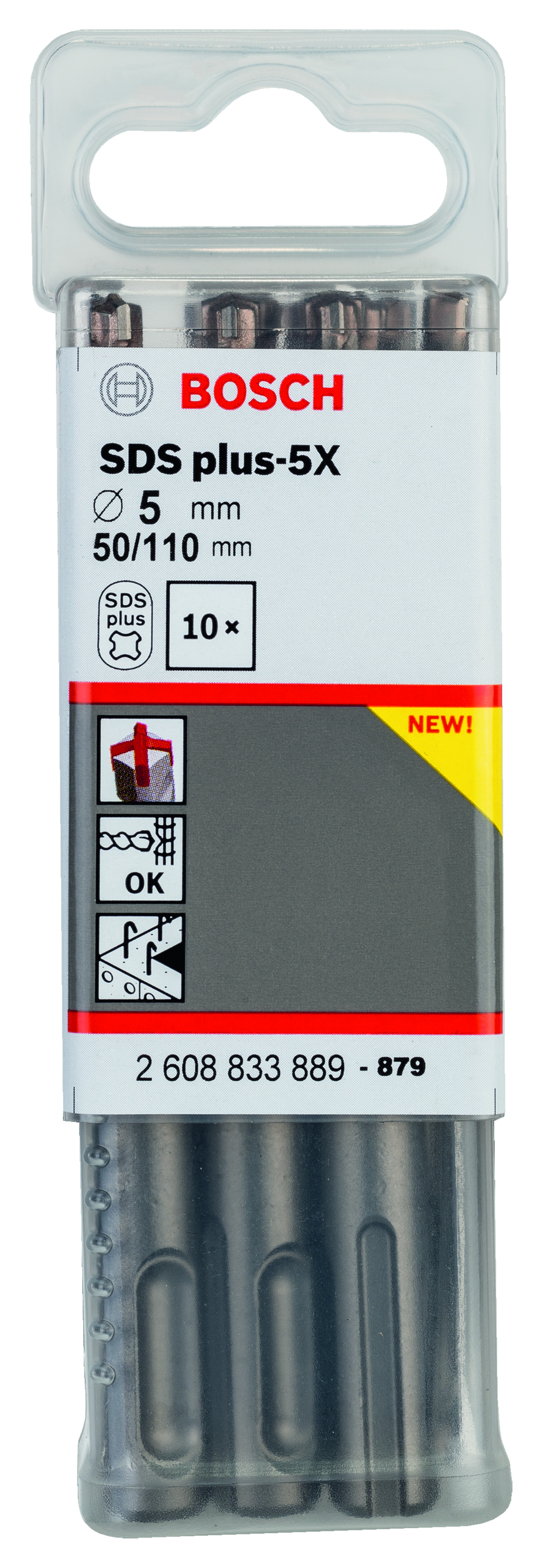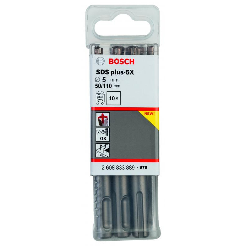 Emballage: 10Marque: BoschRéférence: 2608833889EAN: 6949509223838Description: 10 Foret bet PRO SDS plus-5X 5x50x110 mm