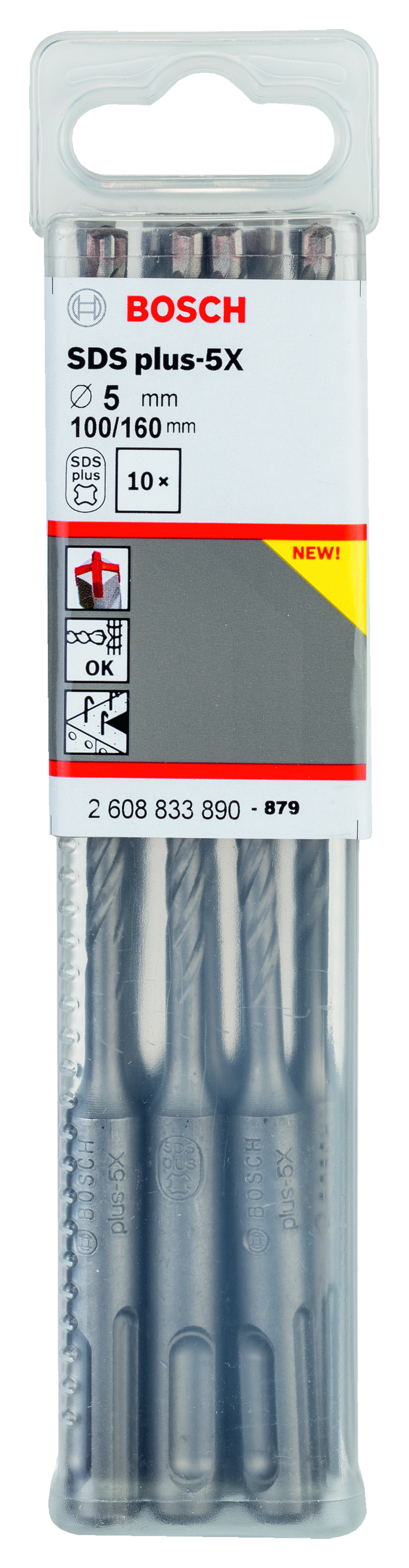 Emballage: 10Marque: BoschRéférence: 2608833890EAN: 6949509223845Description: 10 Foret bet PRO SDS plus-5X 5x100x160 mm