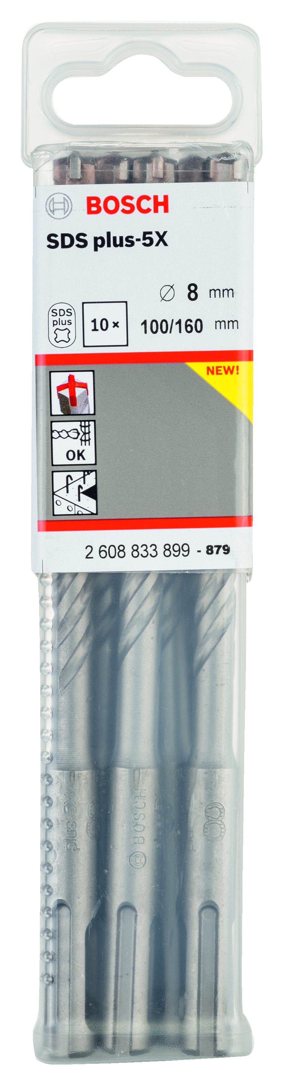 Emballage: 10Marque: BoschRéférence: 2608833899EAN: 6949509223937Description: 10 Foret bet PRO SDS plus-5X 8x100x160 mm