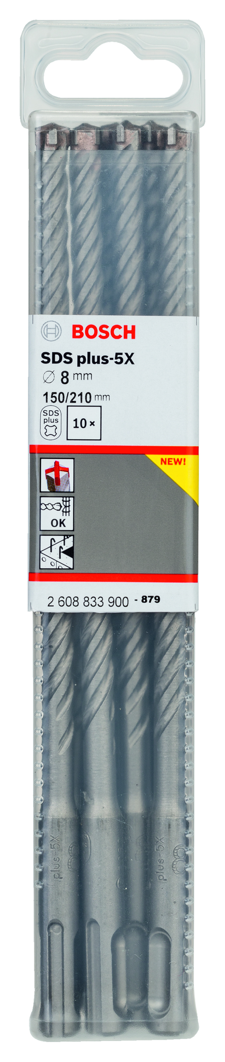 Emballage: 10Marque: BoschRéférence: 2608833900EAN: 6949509223944Description: 10 Foret bet PRO SDS plus-5X 8x150x210 mm