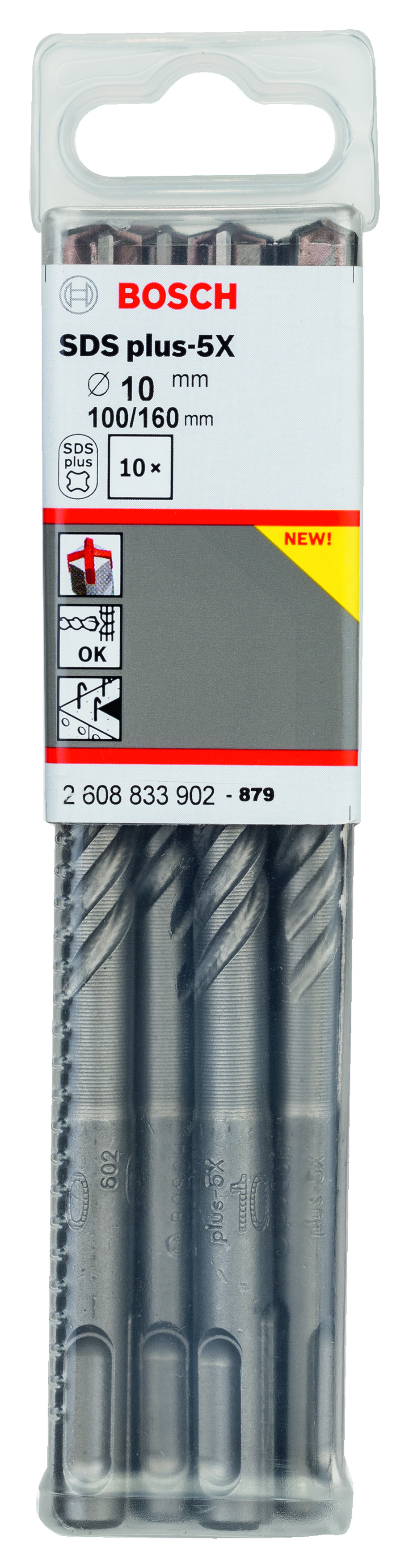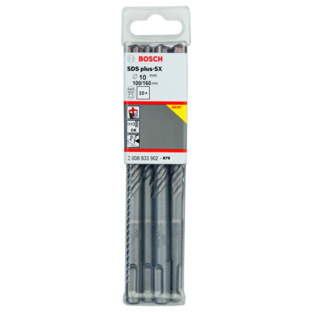 Emballage: 10Marque: BoschRéférence: 2608833902EAN: 6949509223968Description: 10 Foret bet PRO SDS plus-5X 10x100x160 mm