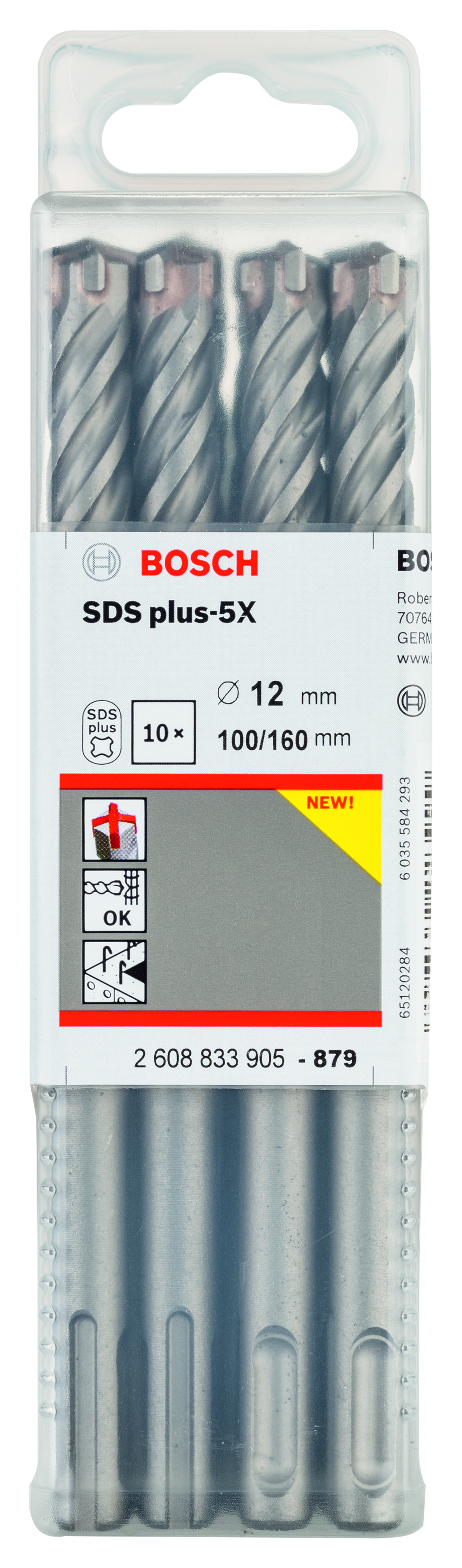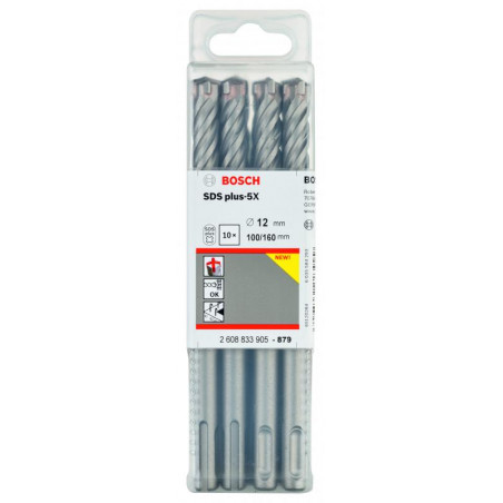 Emballage: 10Marque: BoschRéférence: 2608833905EAN: 6949509223999Description: 10 Foret bet PRO SDS plus-5X 12x100x160 mm
