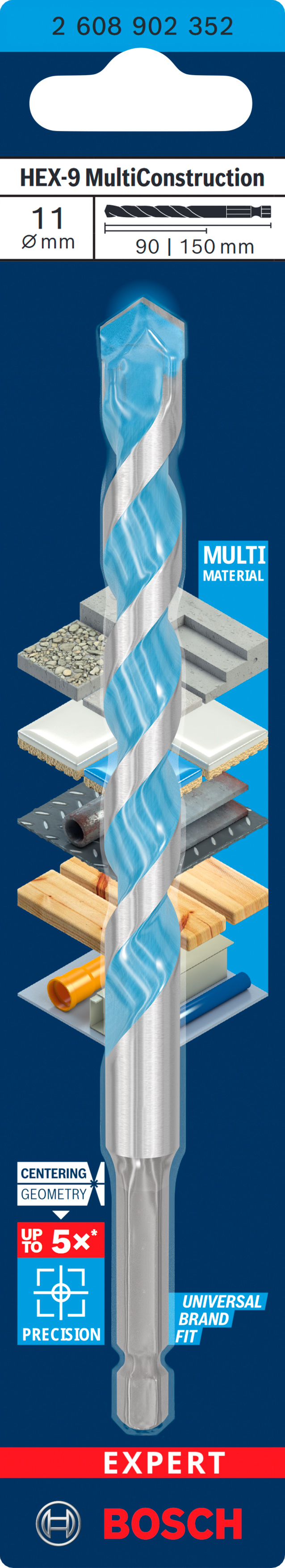 Emballage: 1Marque: BoschRéférence: 2608902352EAN: 6949509245434Description: EXPERT Foret polyvalent HEX-9 MultiConstruction 11x90x150