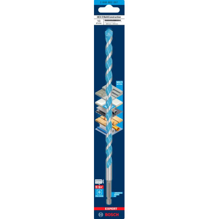 Emballage: 1Marque: BoschRéférence: 2608902357EAN: 6949509245489Description: EXPERT Foret polyvalent HEX-9 MultiConstruction 10x200x250